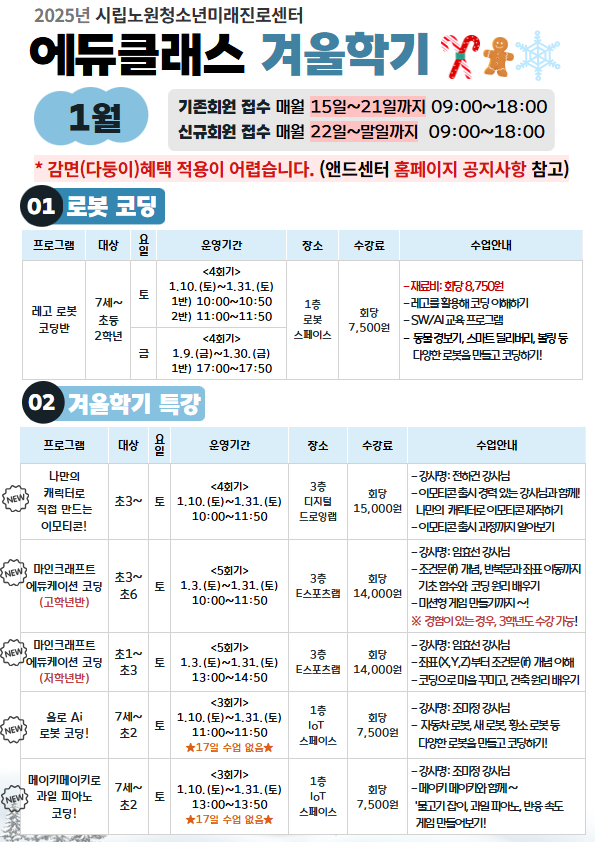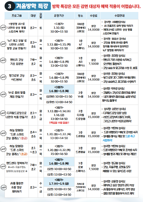 *NEW! 신설강좌는 12월 15일 ~ 31일까지 접수 기간입니다.