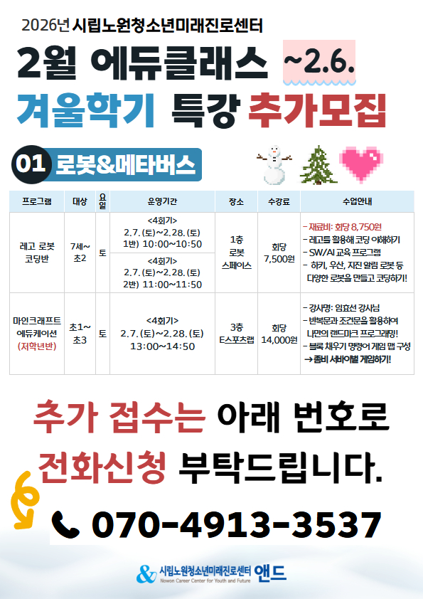 추가 접수는 아래 전화로만 신청 가능합니다.