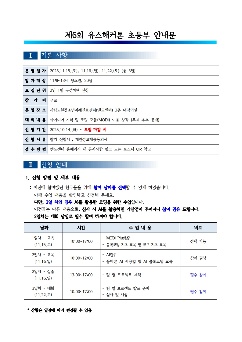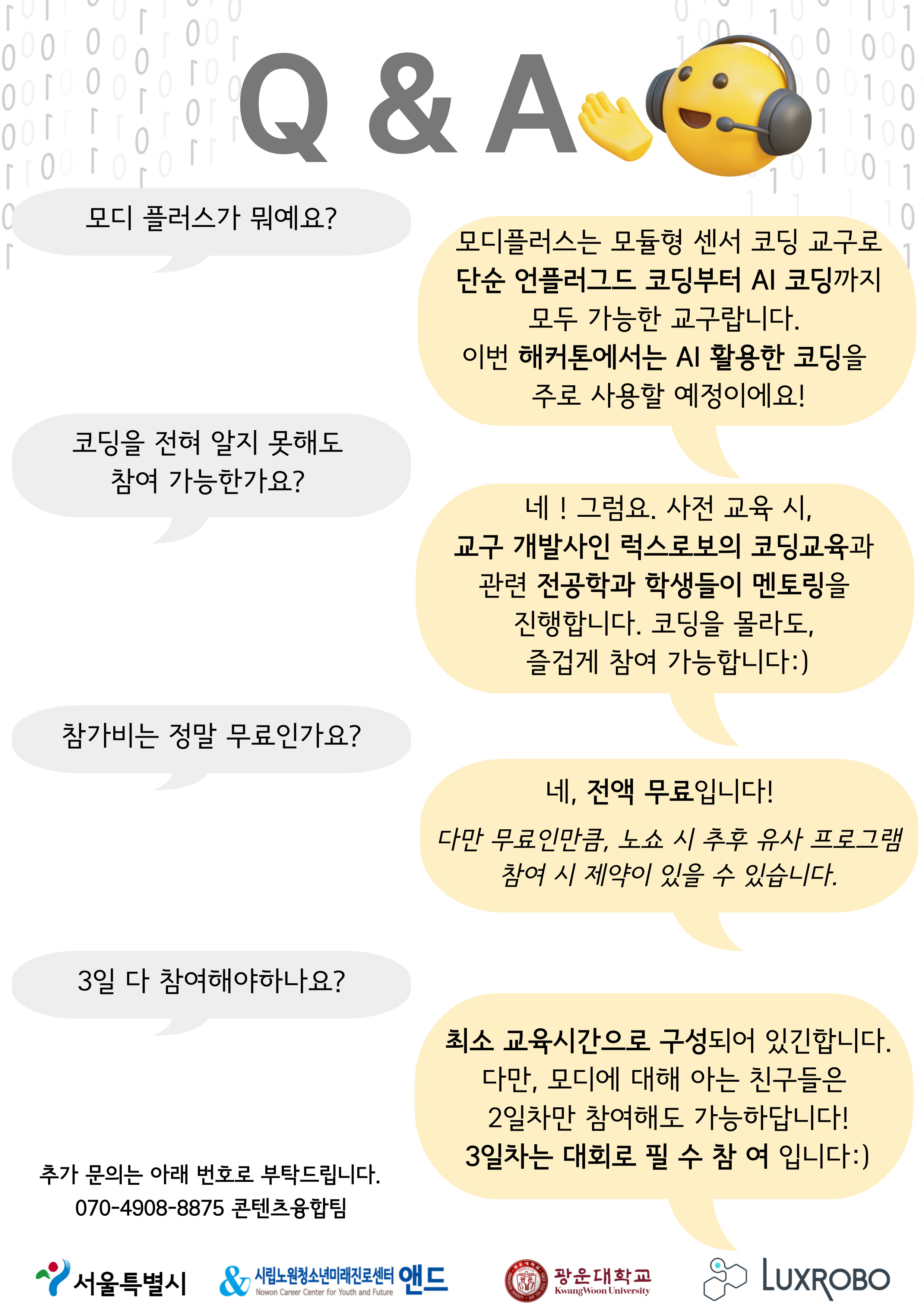 - 콘텐츠융합팀 유스해커톤담당자 ☎070-4908-8875