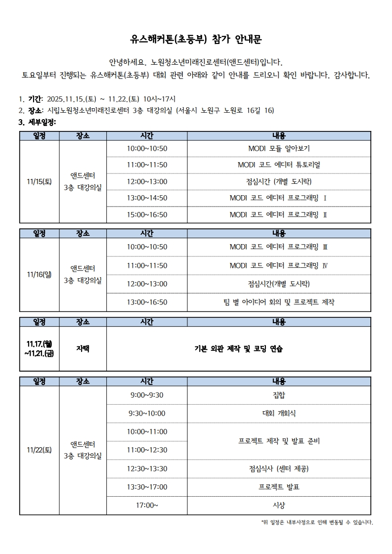 -대회 개최 : 11월 22일(토) 10:00~15:00, 앤드센터