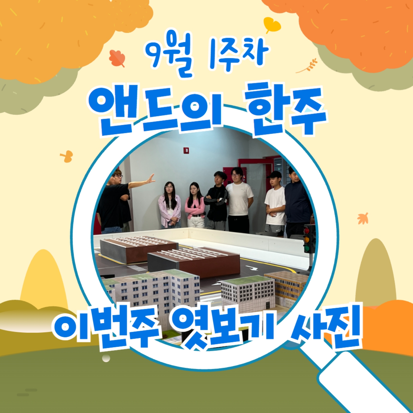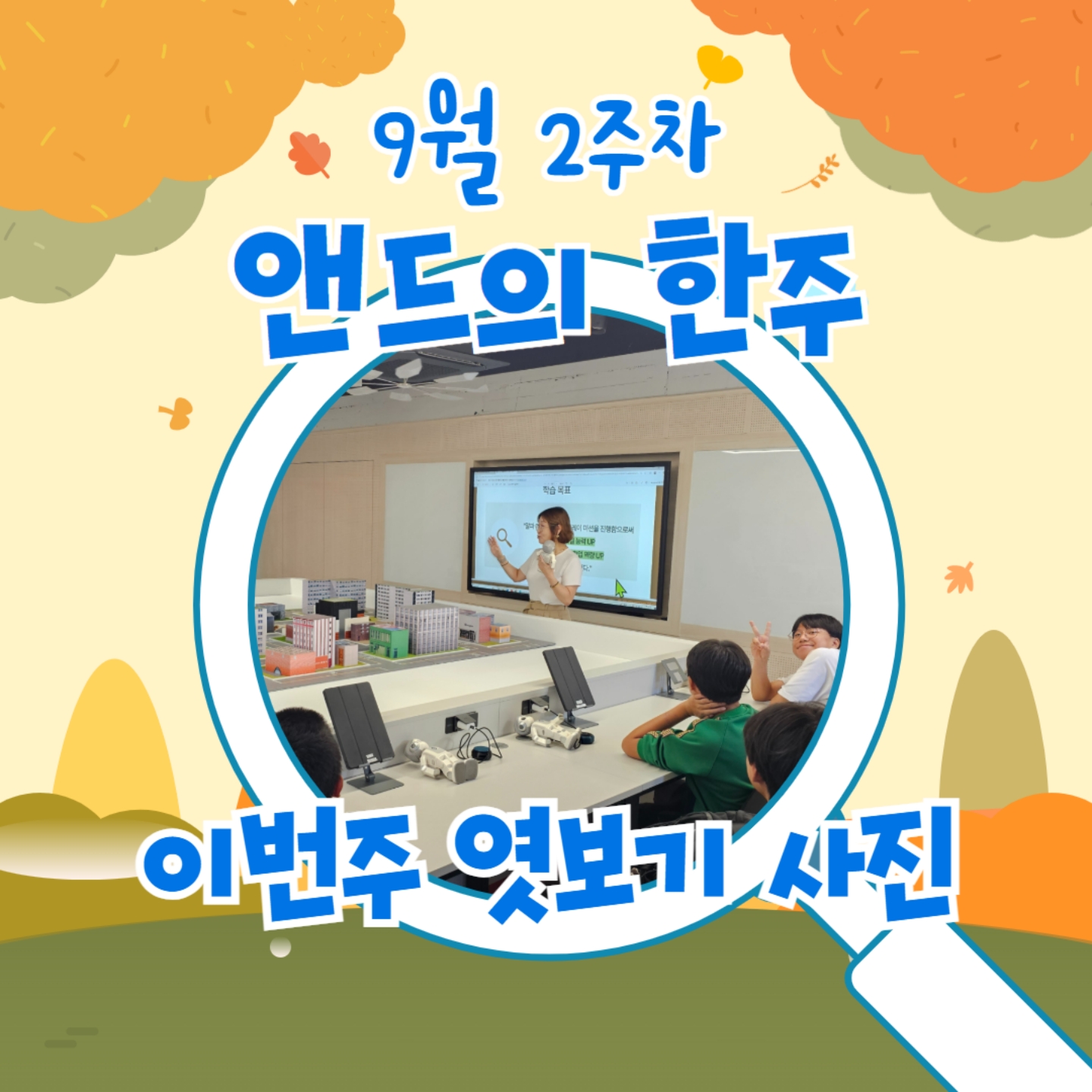 지난 주 앤드에서 어떤 활동이 있었을까요~!?1) 광복80주년 기념으로 진행 된 융합교육프로젝트 영상 상영회 및 시상식!!2) 문제해결을 위한 청소년들의 프로젝트인 디지털PBL3) 위드놀로지 프로젝트를 통해 미래기술 프로그램을 만나는 특별한 청소년들!4) 광복80주년을 기억하기위해 진행 된 멀티플랙스 광복 이벤트이 외에도 에듀클래스, 앤드디지털놀이터가 진행되고 있으니 많은 관심 부탁드려요~~ ^^