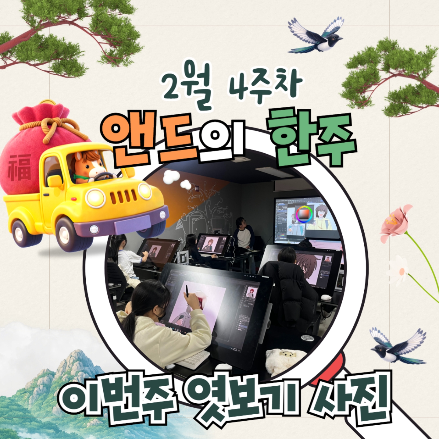 [앤드의 한주] 2월 2주차[앤드의 한주] 2월 2주차즐거운 설 명절 보내셨나요~ ^^가족들과 함께하면 추운겨울도 따뜻하게 느껴지죠~지난 주 앤드에서 어떤 활동이 있었을까요~!?1) 얼음도시 태백에서 진행 된 코딩캠프~!! 게임 소비자에서 크리에이터로!! 실제 진로체험을 경험했어요-2) 도봉구 지역아동센터협의회 청소년들의 방문으로 시끌벅적했던 앤드월드~!!3) 겨울방학동안 여러분에게 항상 열려있는 멀티플렉스와 앤드디지털놀이터가 있답니다~청소년운영위원회와 특화동아리 모집중이에요!! 많은 관심과 참여 부탁드립니다~~^^