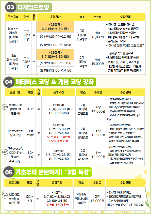 *NEW! 신설강좌는 2월 9일 ~ 28일까지 접수 기간입니다.