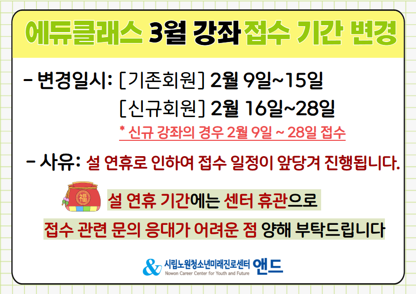 ★2월은 설 연휴로 인하여 일시적으로 접수 기간을 변경하였으니 참고 부탁드립니다.★
