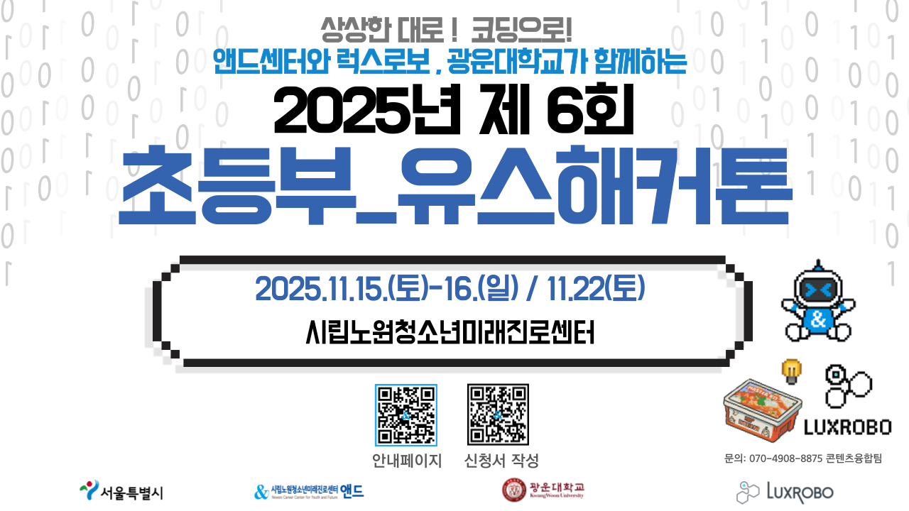 [모집] 제 6회 초등부 유스해커톤일정 : 2025.11.15.(토)~11.16.(일), 11.22.(토)